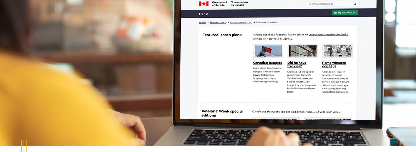 | Veterans Affairs Canada Learning Resources | | Remembrance Day will soon be here! Are you looking for free, bilingual materials to help youth in your community learn more about Veterans? Check out Veterans Affairs Canada’s many digital resources, including videos, lesson plans, Veteran interviews and historical information. The popular Veterans’ Week print products are also back for 2025. Order today, while supplies last. View the VAC Veterans’ Week flyer for more resources. |